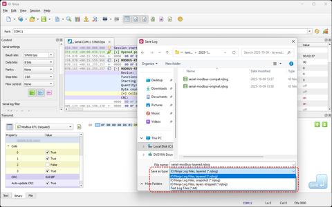 - NEW: Layered log files for decomposition of saved logs in Modbus Analyzer and other layer plugins